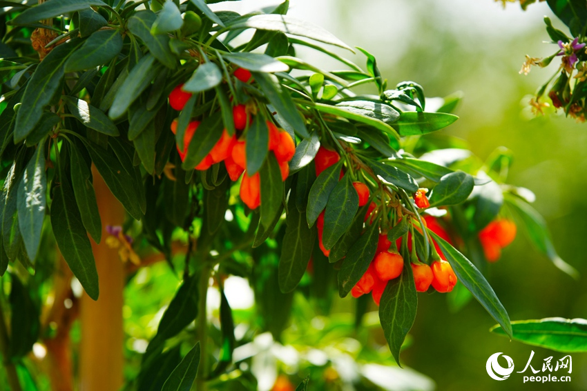 枸杞采摘園內掛在枝頭的枸杞。人民網 周航攝