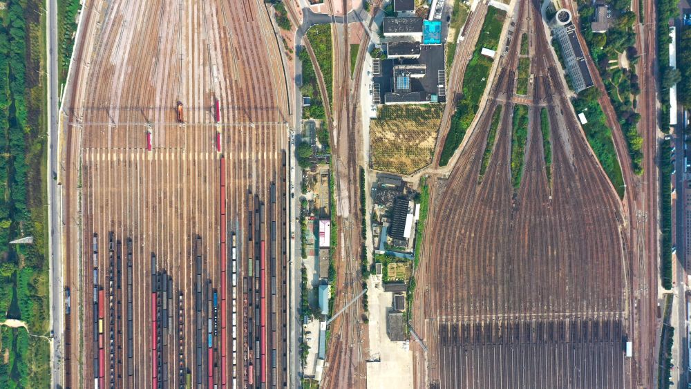 這是2023年9月拍攝的鄭州北站編組場(無人機(jī)照片)。新華社記者 殷剛 攝