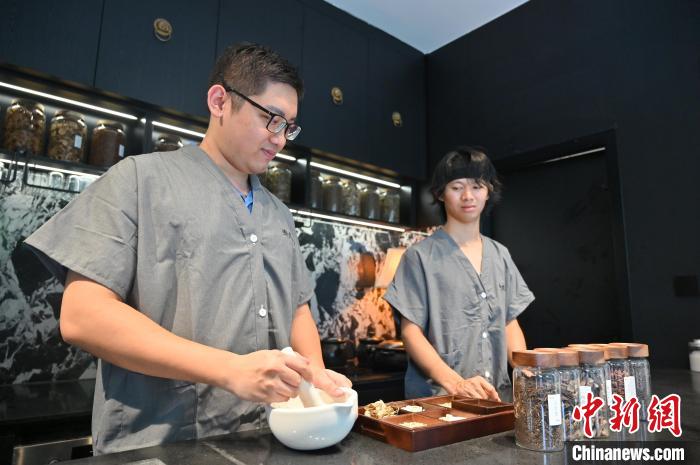 “我們通過在休息區(qū)增設了‘中醫(yī)和你聊會兒天’項目,顧客能在聽歌、品藥膳的過程中體驗把脈,以親和的方式,讓客人享受單獨診療咨詢服務?!痹撛\所負責人甘斌介紹,新潮中醫(yī)館搭建新社交場景,讓民眾隨時感受中醫(yī)文化。在有著十五年從醫(yī)經驗的他看來,“舊與新”的碰撞讓中醫(yī)文化變新潮,養(yǎng)生也能很“酷”。