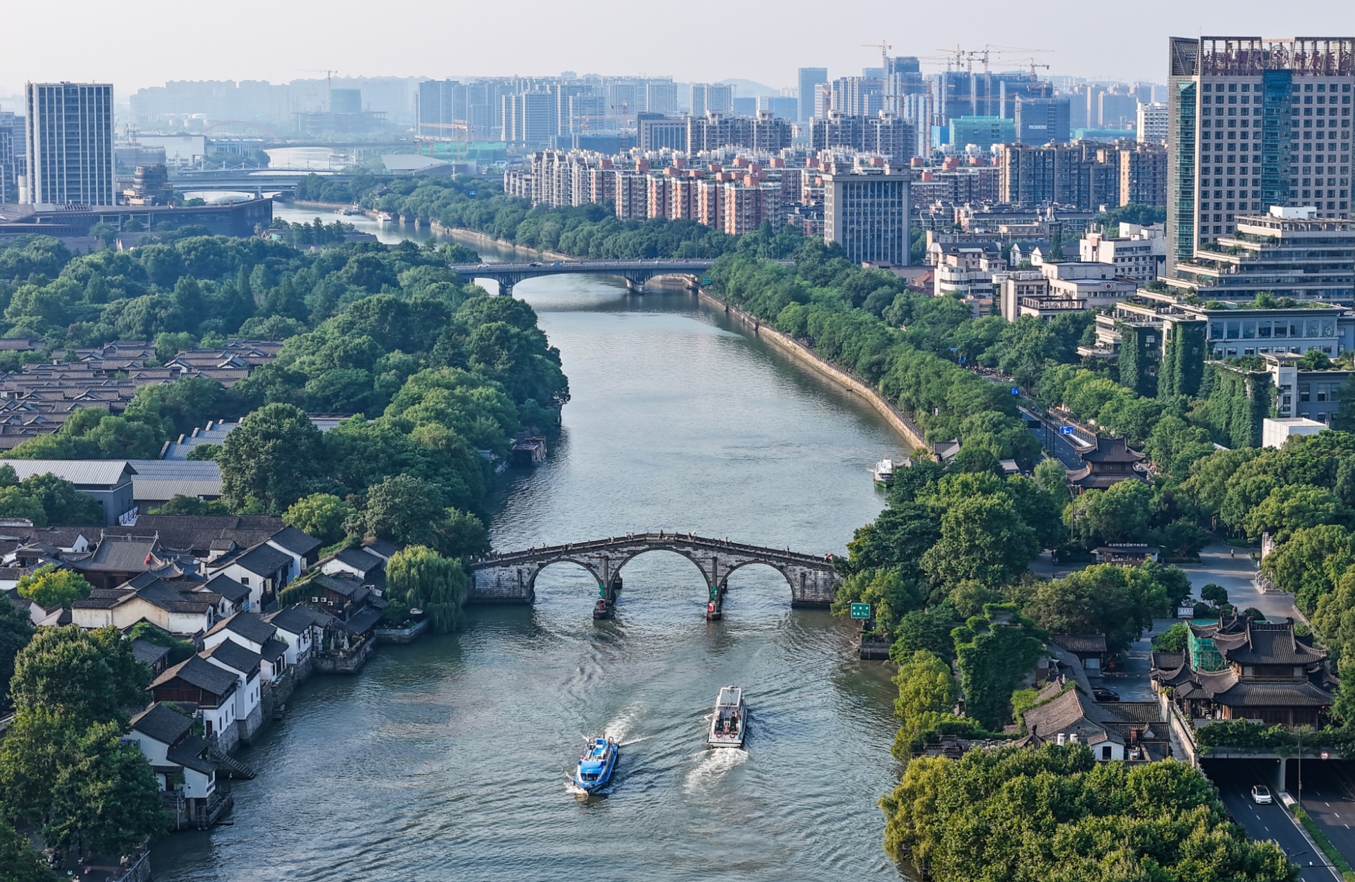 從空中俯瞰大運(yùn)河(杭州段)拱宸橋兩岸