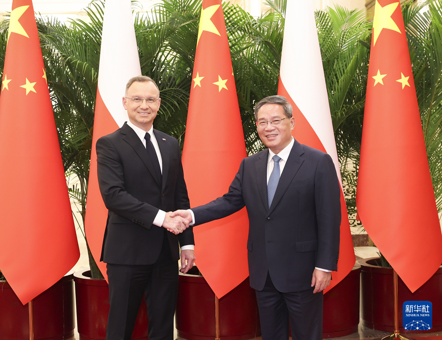 6月24日上午,國務(wù)院總理李強(qiáng)在北京人民大會(huì)堂會(huì)見來華進(jìn)行國事訪問的波蘭總統(tǒng)杜達(dá)。新華社記者 龐興雷 攝