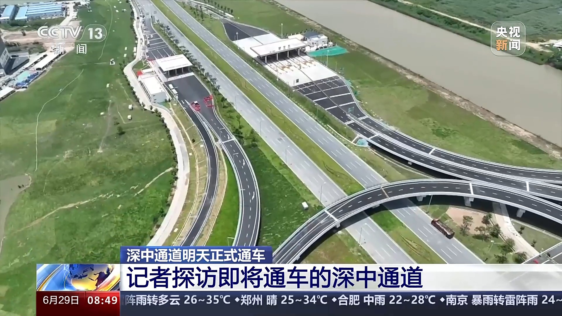 總臺記者 王思元:深中通道全長24公里,我們行駛了大概18分鐘,就已經(jīng)通過海底隧道進入了深圳。這里是重要的互聯(lián)互通的交通樞紐,我身后就是廣深沿江高速,通過我的另一側,大家可以看到,從這里行駛5公里左右,就可以到達機荷高速和廣深高速了,從這個位置到達深圳寶安國際機場有2公里的距離。