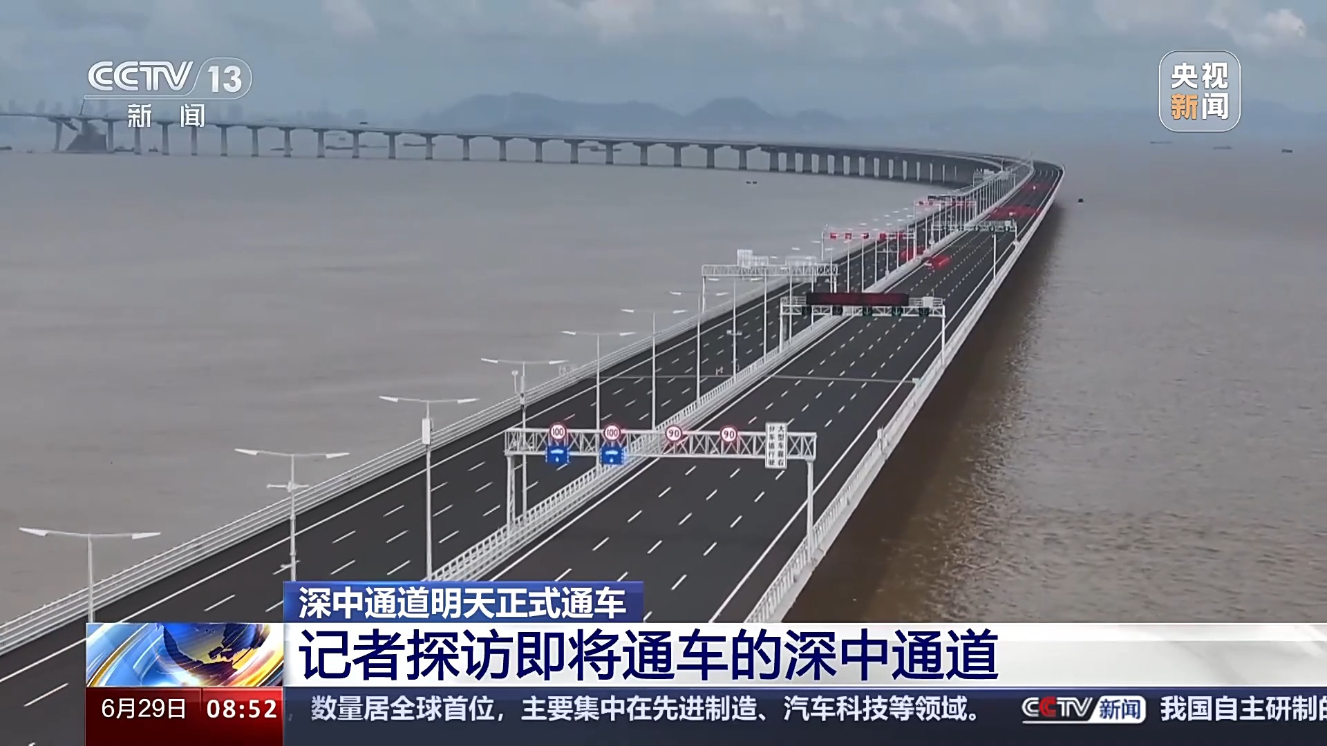 國家重大工程深中通道將于6月30日15時正式通車試運營。深中通道全長約24公里,通車后,從深圳到中山的車程將從目前的2小時縮短至30分鐘。深中通道橫跨珠江口東西兩岸,是當前世界上綜合建設難度最高的跨海集群工程之一。行駛在深中通道上的體驗如何?接下來我們就跟隨記者一起去感受一下。