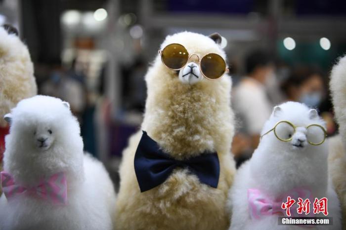 資料圖:2021年5月7日,首屆中國(guó)國(guó)際消費(fèi)品博覽會(huì)在海南省??谑姓介_(kāi)展,秘魯羊駝毛產(chǎn)品品牌Warmpaca攜各種羊駝萌寵玩偶亮相消博會(huì)。 中新社記者 崔楠 攝