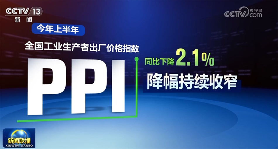 上半年,全國(guó)工業(yè)生產(chǎn)者出廠價(jià)格指數(shù)PPI降幅持續(xù)收窄,同比下降2.1%。