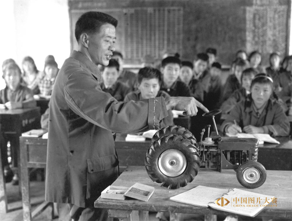 1980年12月4日,湖北省蒲圻縣泉口農(nóng)業(yè)中學(xué)教師給農(nóng)機(jī)班學(xué)生講拖拉機(jī)結(jié)構(gòu)原理。李一方 攝/新華社中國(guó)照片檔案館