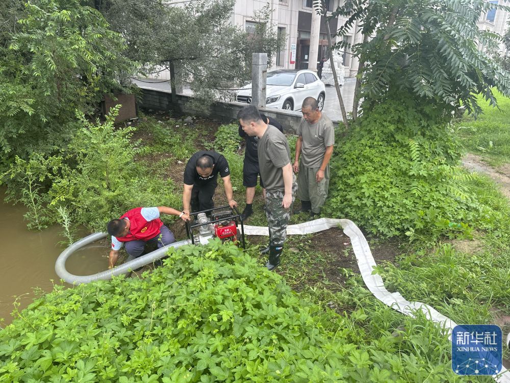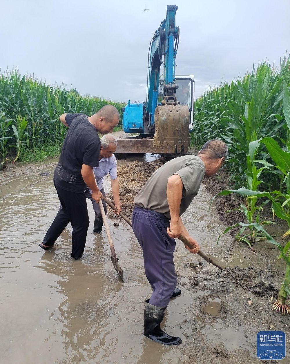 7月28日,鐵嶺市昌圖縣昌圖鎮(zhèn)八家子村組織黨員干部來到低洼耕地進行排水,減少農田內澇?! ⌒氯A社發(fā)