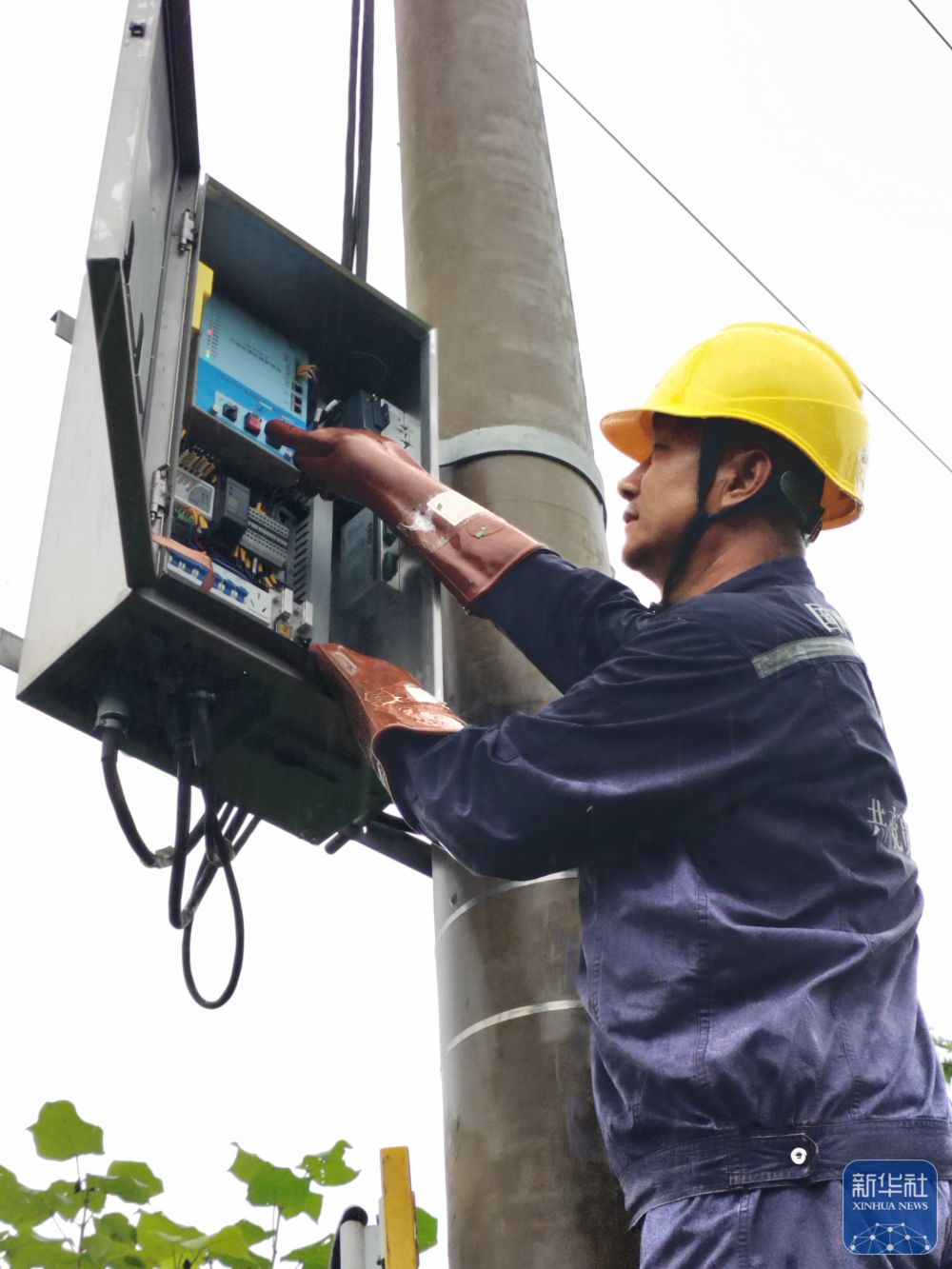 7月28日,在遼寧省丹東市,國家電網丹東供電公司員工對10千伏綠豆營線進行特巡?! ⌒氯A社發(fā)