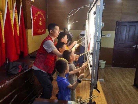紙影戲(影偶制作技藝)非遺傳承人吳淵帶領小朋友體驗紙影戲。受訪者供圖