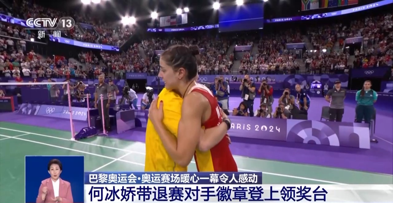 在羽毛球女單決賽中,中國選手何冰嬌0∶2不敵韓國的安洗瑩,收獲一枚銀牌。頒獎儀式上,何冰嬌在舉起獎牌的同時(shí),拿出了一枚帶有西班牙國旗的徽章,向半決賽中因傷退賽的西班牙名將馬林送上慰問,祝愿她能夠早日康復(fù),重回賽場。運(yùn)動員之間不只有競爭,也有惺惺相惜、互相尊重,這也是奧林匹克精神的一種體現(xiàn)。