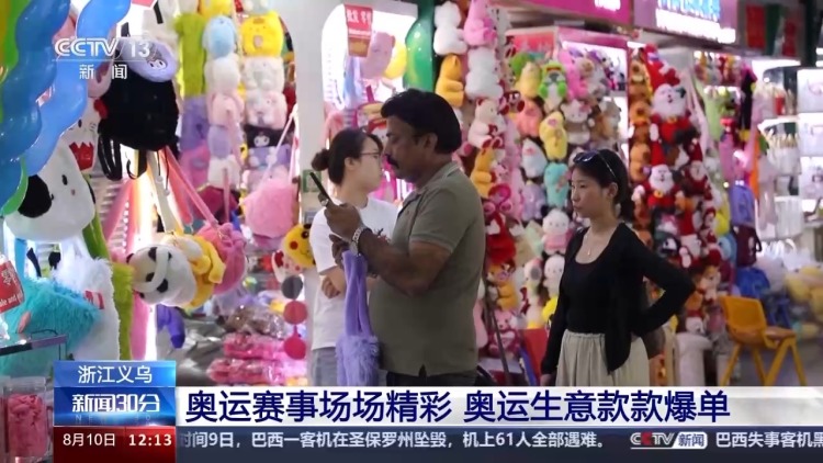 巴黎奧運會激戰(zhàn)正酣,“奧運經濟”也持續(xù)升溫。從各類體育用品、奧運手環(huán),到“冠軍同款發(fā)夾”,在浙江義烏國際商貿城,國際客商來往穿梭,與奧運相關的產品訂單不斷。