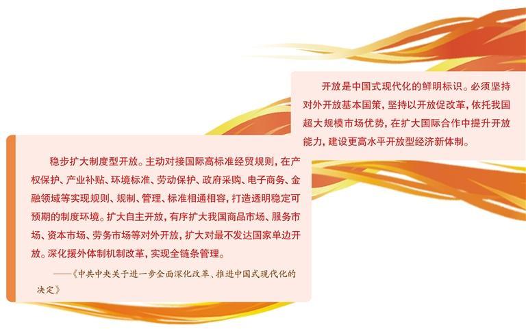 《決定》提出“穩(wěn)步擴大制度型開放”,要求主動對接國際高標(biāo)準(zhǔn)經(jīng)貿(mào)規(guī)則?!稕Q定》作出的一系列重要部署影響廣泛、意義深遠(yuǎn)。