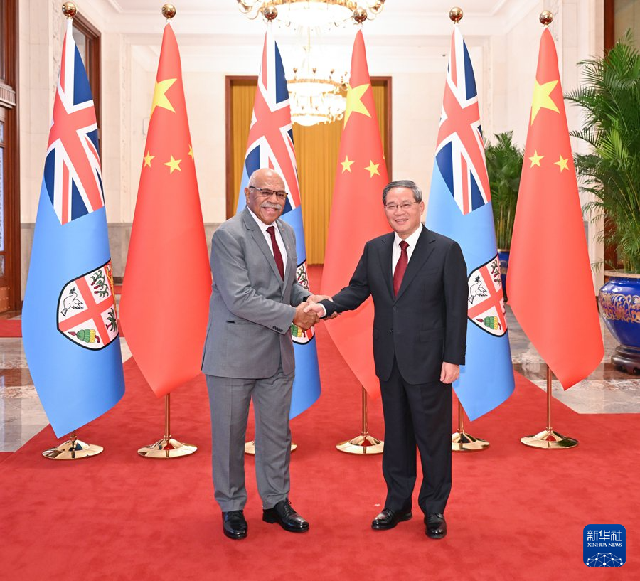 國務(wù)院總理李強(qiáng)8月18日下午在北京人民大會堂同來華進(jìn)行正式訪問的斐濟(jì)總理蘭布卡舉行會談。