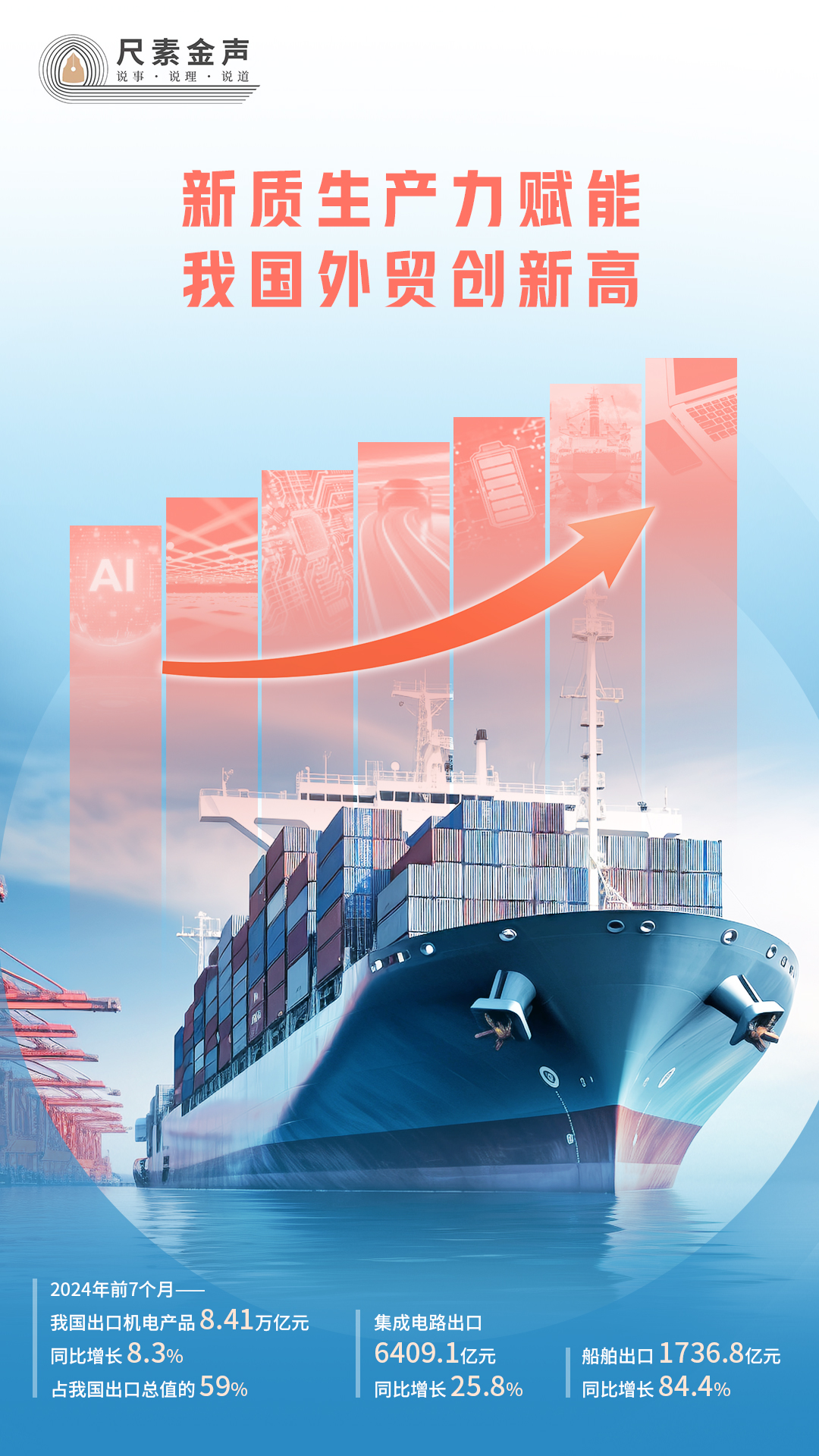 發(fā)展新質(zhì)生產(chǎn)力,讓我國外貿(mào)競爭力越來越足。從奧運(yùn)相關(guān)體育器材到功能多樣的電子產(chǎn)品,從智能“綠色”船舶到性能領(lǐng)先的集成電路……顯著的產(chǎn)業(yè)鏈供應(yīng)鏈競爭優(yōu)勢、強(qiáng)勁的創(chuàng)新動能和有力的政策支持,支撐我國外貿(mào)國際競爭力與日俱增,高技術(shù)、高附加值產(chǎn)品快速增長,不斷在海外圈粉。