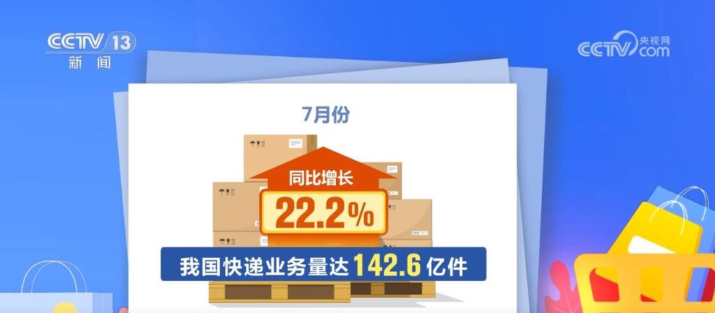同時,線上消費增勢較好。1—7月,實物商品網(wǎng)上零售額同比增長8.7%,占社零總額比重為25.6%。7月份,我國快遞業(yè)務(wù)量達142.6億件,同比增長22.2%。