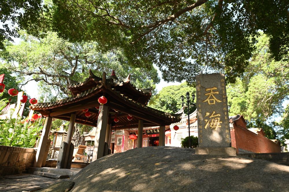 泉州市豐澤區(qū)真武廟前,一方巨石拱出地面、宛如龜背,上方石碑篆刻的“吞?!眱蓚€(gè)大字,彰顯了泉州人征服大海的豪情。