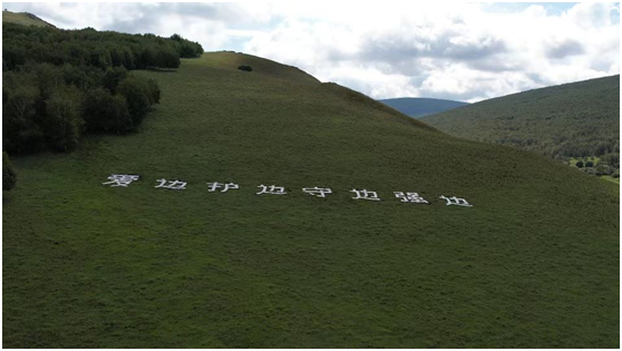 1984年7月,王玉發(fā)在阿爾山林業(yè)局林場工作期間,光榮地加入了中國共產(chǎn)黨。今年,王玉發(fā)迎來了加入中國共產(chǎn)黨的第40個(gè)年頭。為了慶祝這一特殊時(shí)刻,王玉發(fā)用1000余塊石磚堆砌出“愛民 護(hù)邊守邊 強(qiáng)邊”八個(gè)大字,成為山坡上一道壯觀的風(fēng)景線。