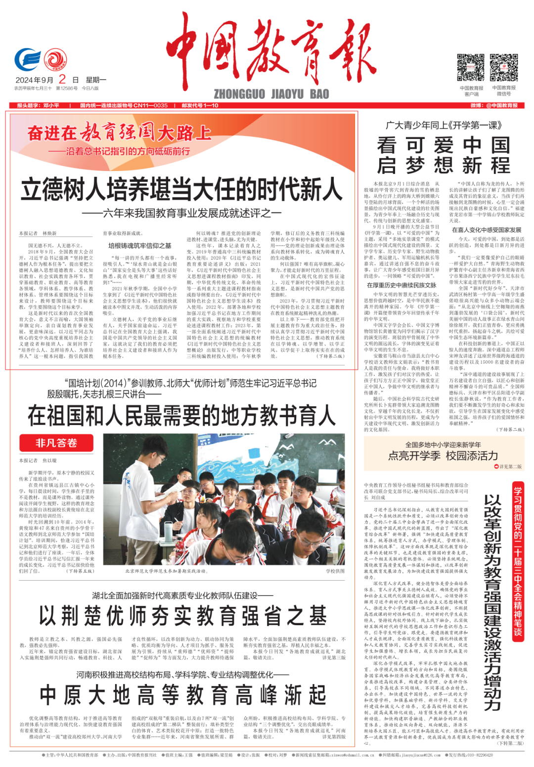 在習(xí)近平新時代中國特色社會主義思想引領(lǐng)下,我們看到,教育戰(zhàn)線3億名師生高舉信仰之炬,昂揚斗志,融入強國建設(shè)的磅礴洪流。
