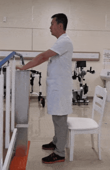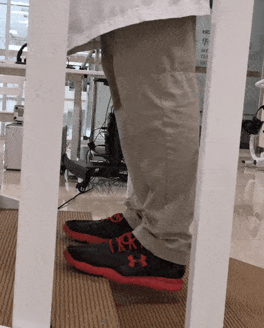 雙腳分開,雙手扶在墻面或扶手上,保證平衡。足跟緩慢抬起,停留一會兒,然后恢復(fù)至初始動作。此為一個完整動作。8~12次/組,做3組。