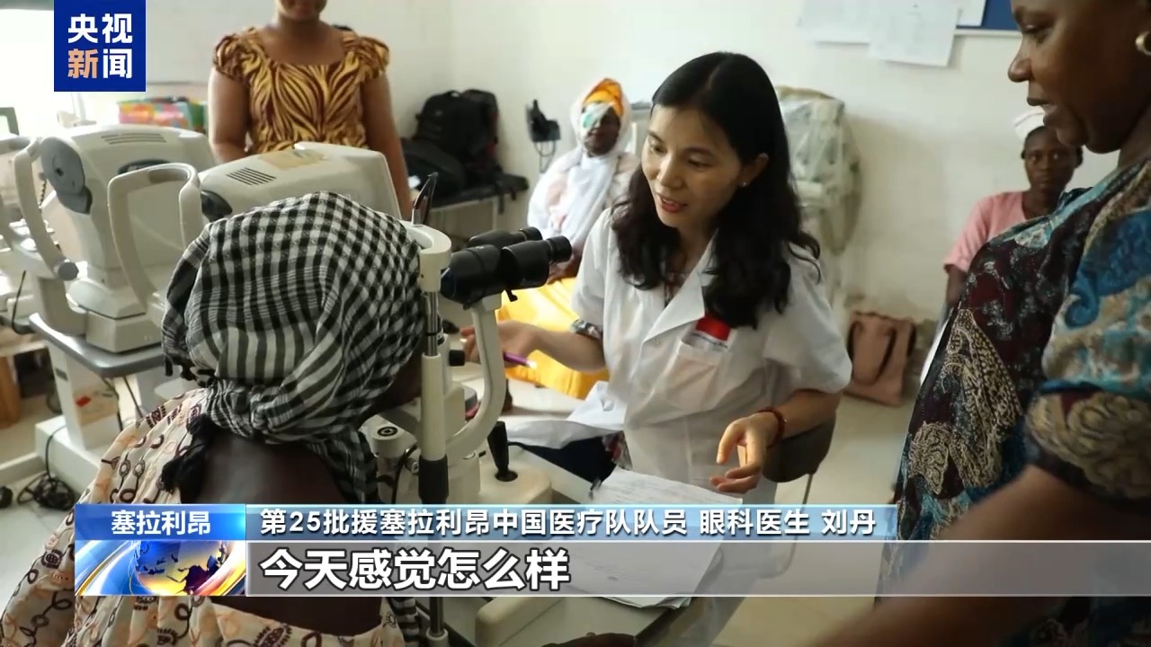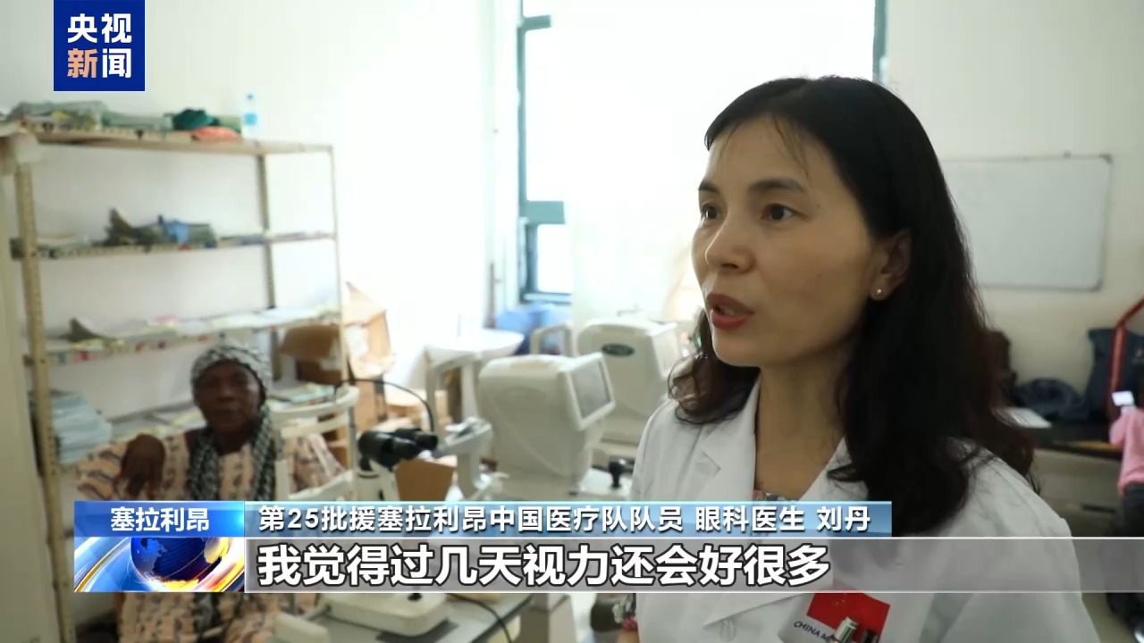 第25批援塞拉利昂中國醫(yī)療隊(duì)隊(duì)員 眼科醫(yī)生 劉丹:這是昨天一個(gè)(接受)白內(nèi)障手術(shù)的病人,她術(shù)前的視力只能看見眼前的手在動,手指頭都分辨不太清楚。今天一打開(紗布)視力是0.3,我覺得過幾天視力還會好很多。