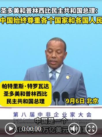 圣多美和普林西比民主共和國總理帕特里斯·特羅瓦達6日在第八屆中非企業(yè)家大會開幕式上說,中國是個大國,而圣多美和普林西比人口只有23萬?!拔医裉煊袡C會在這里發(fā)言,體現(xiàn)了中國始終尊重各個國家和各國人民,共建、共享繁榮和平世界,共筑中非命運共同體?!?/p>