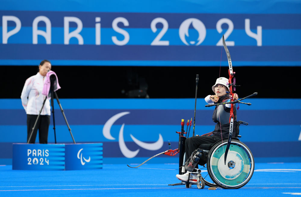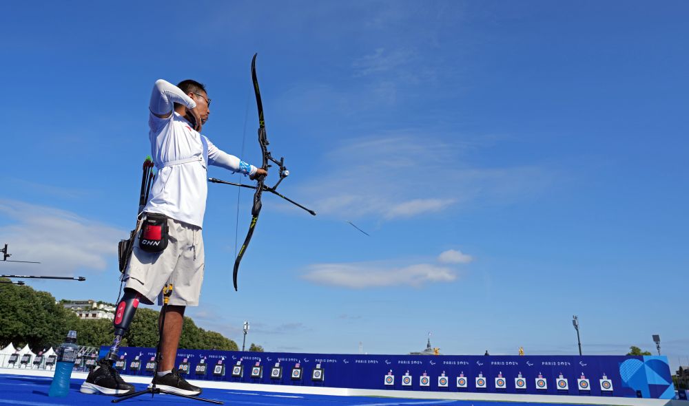 5日無(wú)緣巴黎殘奧會(huì)混合團(tuán)體反曲弓項(xiàng)目半決賽后,走下賽場(chǎng)的甘俊、吳春艷都有些失落。不過(guò),因?yàn)闊釔?ài),第一次參加殘奧會(huì)的甘俊表示下次再來(lái);因?yàn)闃s光,新媽媽吳春艷也渴望繼續(xù)征戰(zhàn)。
