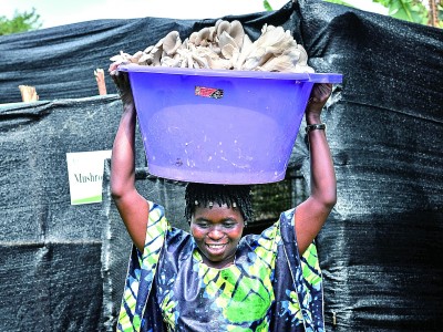 盧旺達(dá)南方省胡耶區(qū),采用中國菌草技術(shù)栽培的鮮菇喜獲豐收。新華社發(fā)