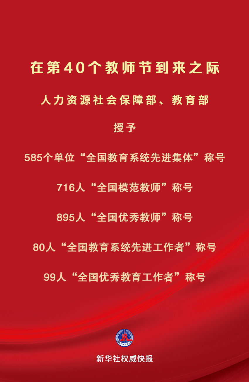 慶祝第40個(gè)教師節(jié)暨全國(guó)教育系統(tǒng)先進(jìn)集體和先進(jìn)個(gè)人表彰活動(dòng)9月8日在京舉行。
