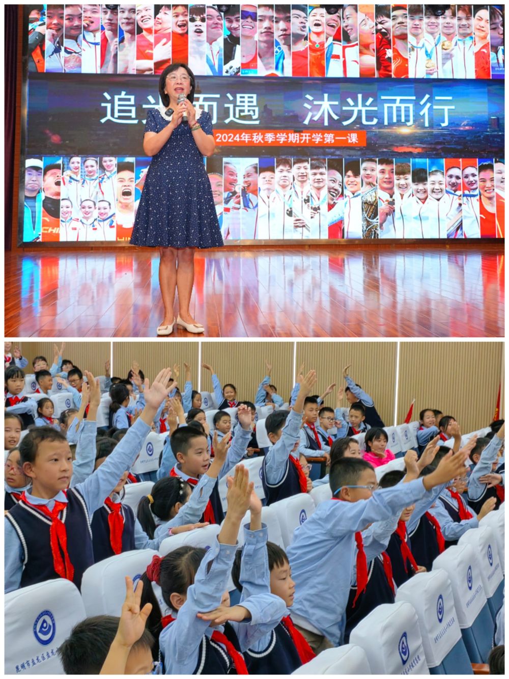 在昆明市盤龍小學教育集團的開學第一課上,黨委書記高輝帶著大家重溫奧運燃情時刻,讓孩子們思考怎樣成為新時代好少年。三年級的唐子堯說:“當看到男子4×100米混合泳接力決賽,中國隊戰(zhàn)勝美國隊獲得金牌,我激動得都哭了。”