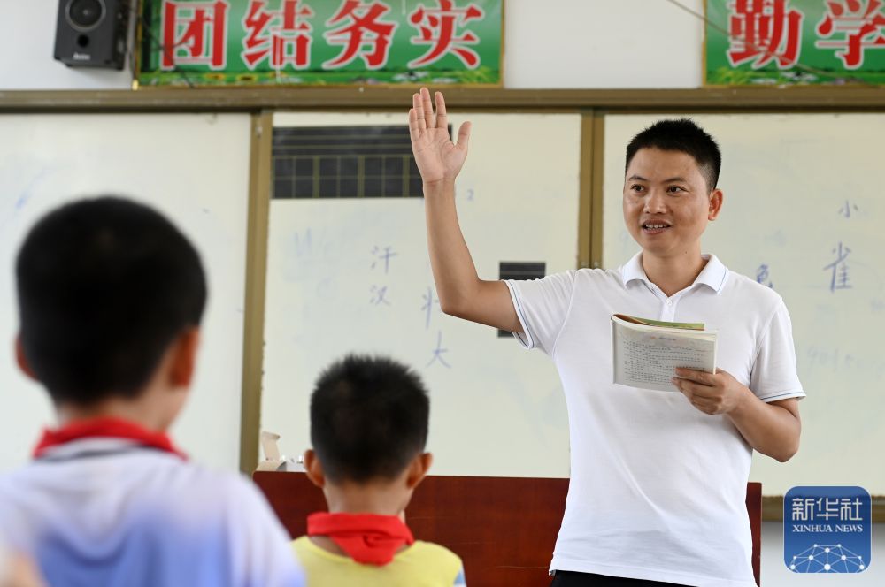 在廣西金秀瑤族自治縣忠良鄉(xiāng)更范教學點,“85后”老師盧秀芬在給學生上課(2019年6月5日攝)。