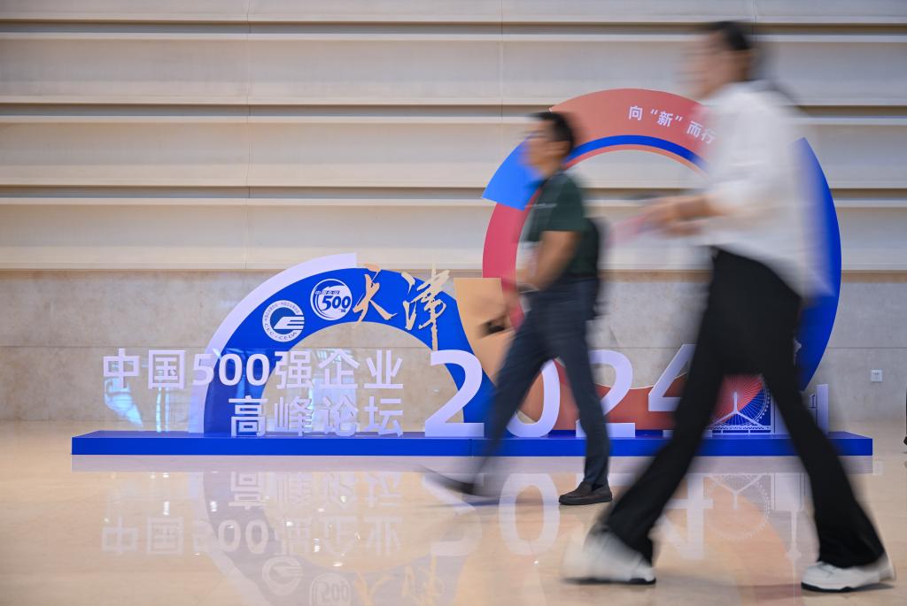9月10日,以“向‘新’而行 打造更多世界一流企業(yè)”為主題的2024中國500強企業(yè)高峰論壇在天津舉行。參會者準(zhǔn)備步入論壇會場。新華社記者 孫凡越 攝
