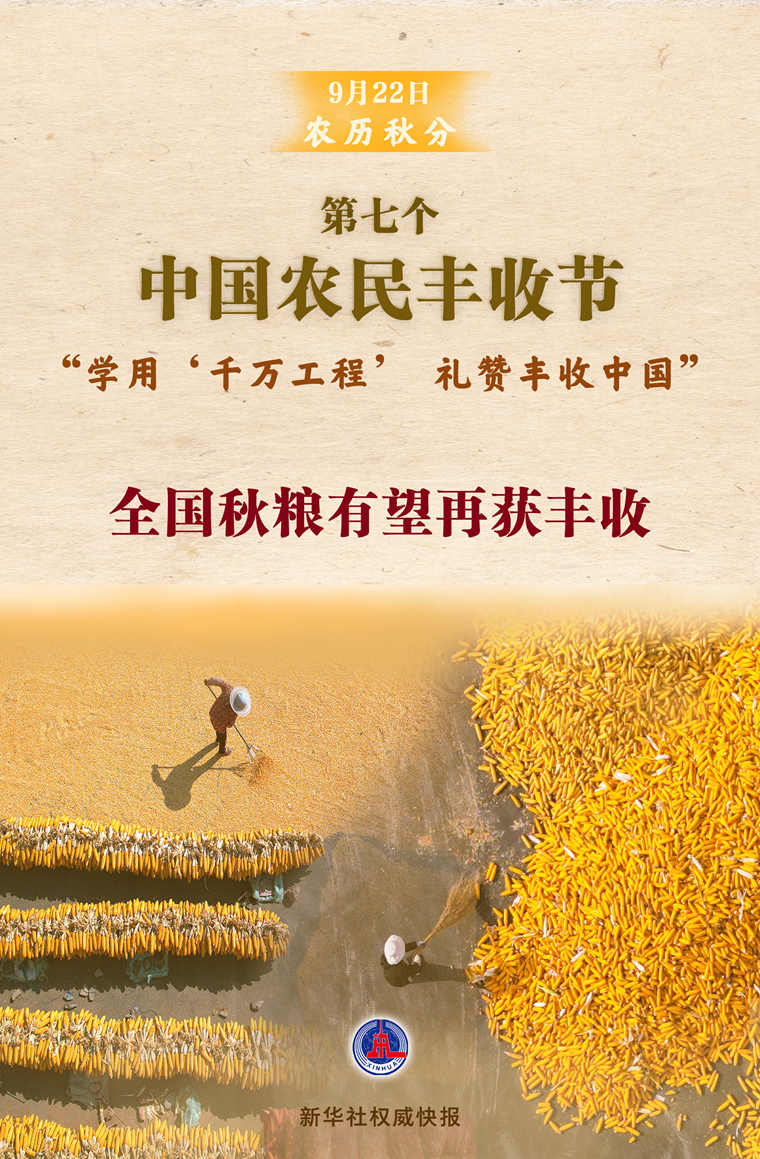 新華社權(quán)威快報(bào)丨第七個(gè)中國(guó)農(nóng)民豐收節(jié)來(lái)了!全國(guó)秋糧有望再獲豐收