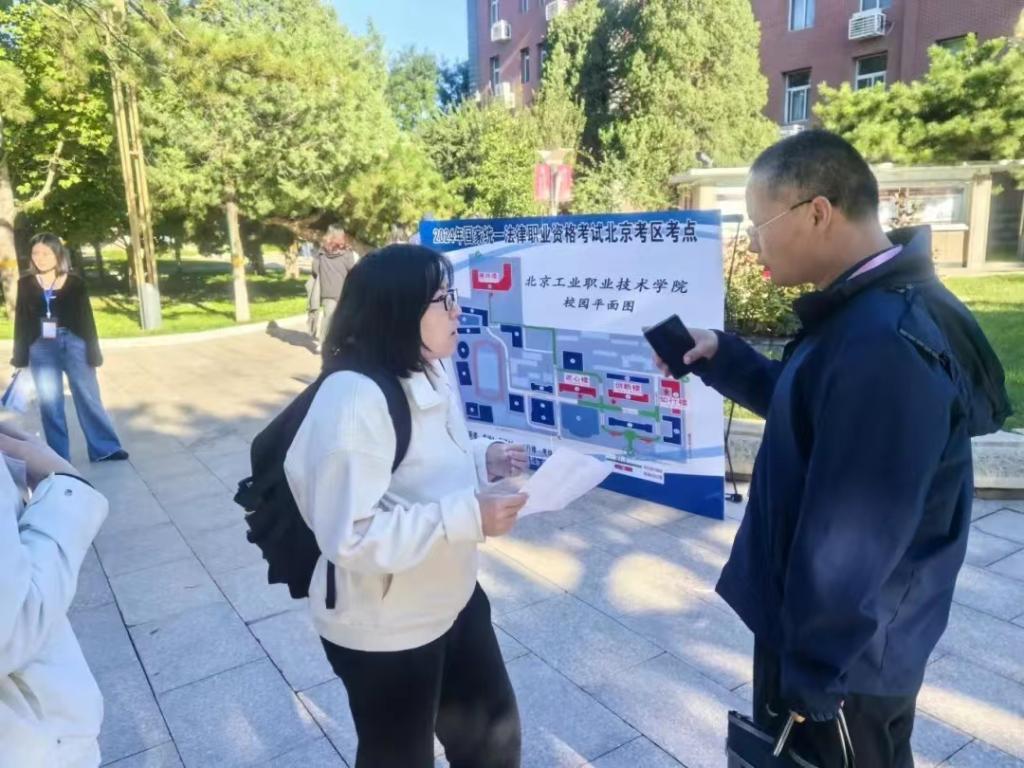 9月21日,考生經(jīng)過身份核驗(yàn)進(jìn)入2024年法考北京考區(qū)考點(diǎn)。(北京市司法局供圖)