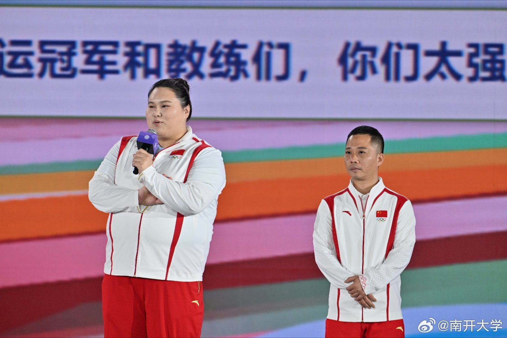 舉重運(yùn)動員李雯雯和她的教練吳美錦。@南開大學(xué) 圖
