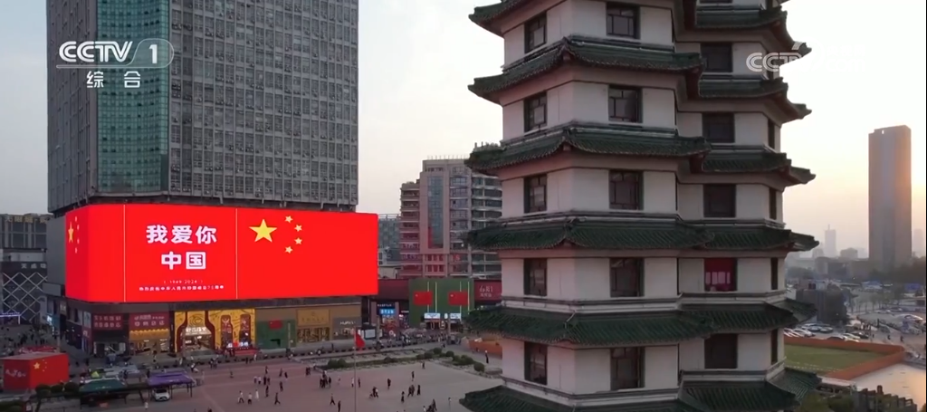 國慶節(jié)臨近,在河南鄭州的大街小巷和各個(gè)地標(biāo),不僅道路兩側(cè)掛滿了鮮艷的五星紅旗,巨幅LED屏幕也是播放出五星紅旗,處處點(diǎn)綴的“中國紅”為城市增添了濃濃的節(jié)日氛圍。