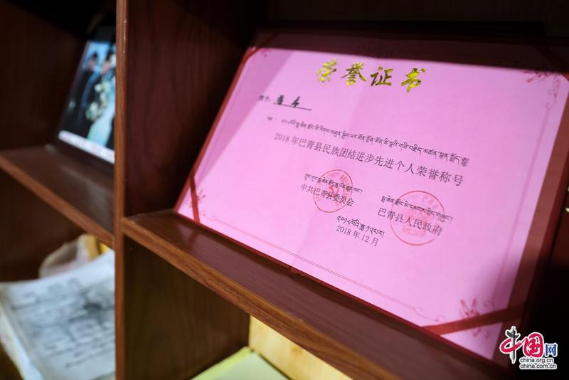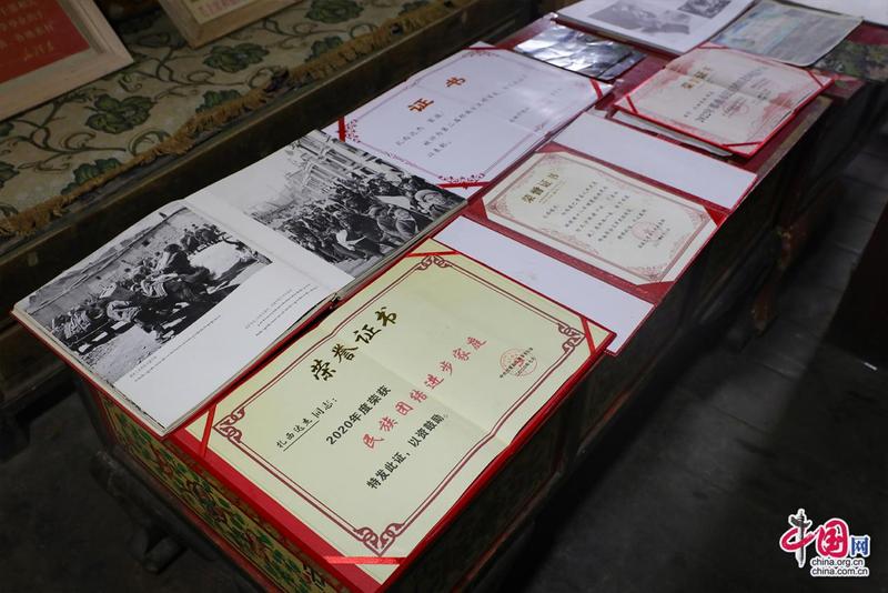“記憶里的珍珠”紅色收藏紀(jì)念館創(chuàng)辦人扎西達(dá)杰所獲榮譽(yù)證書。中國網(wǎng)記者鄭偉攝
