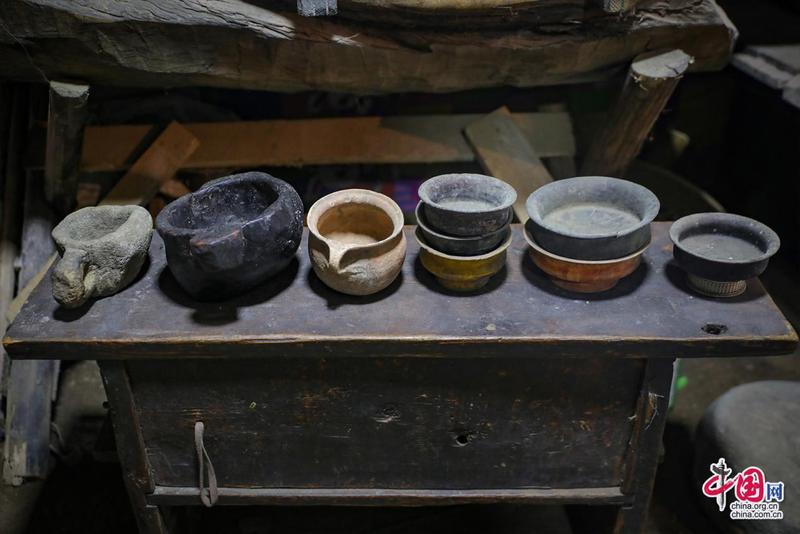 “記憶里的珍珠”紅色收藏紀(jì)念館內(nèi)景·藏式碗具。中國網(wǎng)記者鄭偉攝