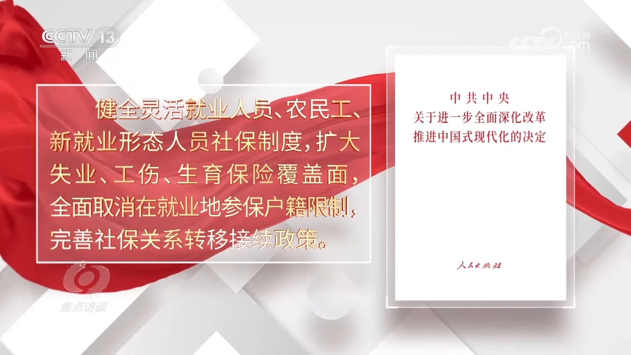 今天節(jié)目繼續(xù)聚焦“開辟中國式現(xiàn)代化廣闊前景”。我們的目標(biāo)很宏偉,也很樸素,歸根結(jié)底就是讓人民過上更好的日子。習(xí)近平總書記說,孩子的撫養(yǎng)教育,年輕人的就業(yè)成才,老年人的就醫(yī)養(yǎng)老,是家事也是國事。的確,中國式現(xiàn)代化民生為大。黨和國家是把這些事放在心上的。黨的十八大以來,我國建成世界上規(guī)模最大的醫(yī)療衛(wèi)生體系,全國各級教育普及程度達到或超過中高收入國家平均水平,建成世界上規(guī)模最大的社會保障網(wǎng)。面對新形勢新挑戰(zhàn),社會保障也在不斷調(diào)整,發(fā)揮兜底作用。黨的二十屆三中全會圍繞“健全保障和改善民生制度體系”作出一系列重要改革部署,提出健全靈活就業(yè)人員、農(nóng)民工、新就業(yè)形態(tài)人員社保制度。這就要求面對新情況新問題,不斷探索完善符合人民群眾需要的社保體系。現(xiàn)在,這項工作在全國多個試點已經(jīng)取得了成效。