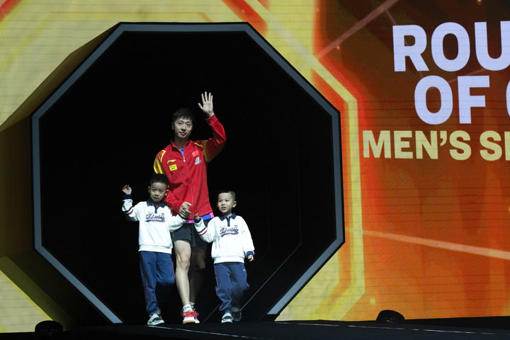 9月30日,馬龍帶著他的兒子們步入賽場。當(dāng)日,在北京舉行的2024年世界乒乓球職業(yè)大聯(lián)盟(WTT)中國大滿貫?zāi)袉问纵啽荣愔?,中國選手馬龍3比0戰(zhàn)勝英格蘭選手利亞姆·皮切福特,晉級32強(qiáng)。新華社記者 肖藝九 攝