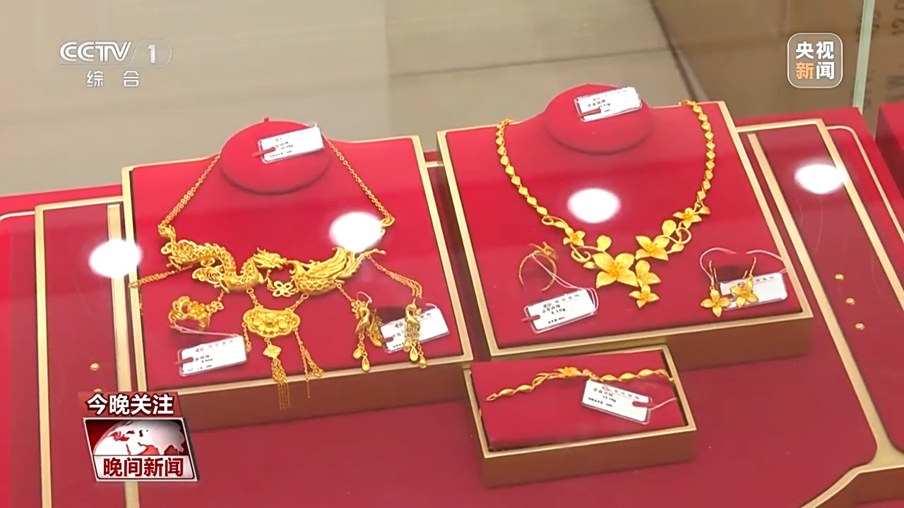 假期里,黃金消費(fèi)向來是不少人的選擇。記者走訪多地商場(chǎng)看到,商家在假期里都做了精心布置。這家商場(chǎng)負(fù)責(zé)人告訴記者,盡管現(xiàn)在國(guó)際金價(jià)在高位運(yùn)行,但是受婚慶剛需影響,項(xiàng)鏈、耳墜等婚慶產(chǎn)品銷量依舊看好。此外,一些蛇年賀歲新產(chǎn)品開始提前上市,受到消費(fèi)者青睞。
