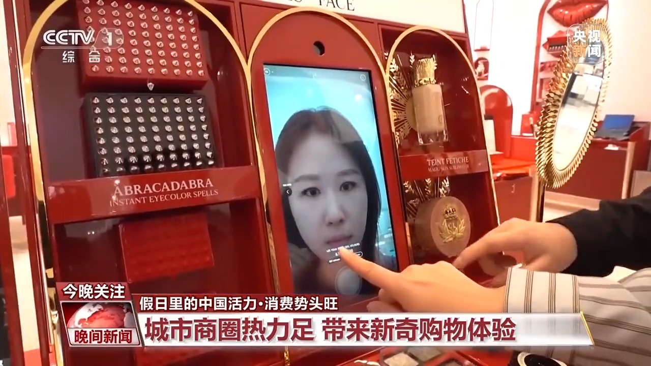 在四川成都,一家大型商場(chǎng)的裸眼3D大屏換上了國(guó)慶新裝,身臨其境的原始森林、被滿天繁星包裹,吸引了許多游客前來打卡?,F(xiàn)場(chǎng)更有虛擬試妝、虛擬試鞋、智能導(dǎo)購(gòu)等等前沿科技帶來的新奇購(gòu)物體驗(yàn)。