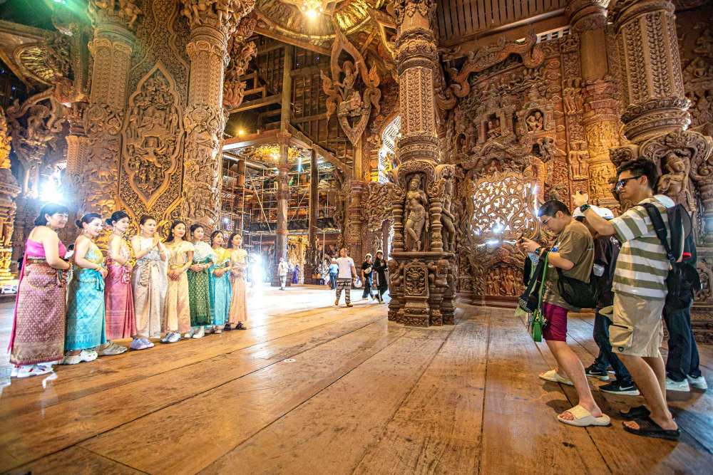 2024年3月29日,游客在泰國芭堤雅真理圣殿拍照。新華社記者王騰攝