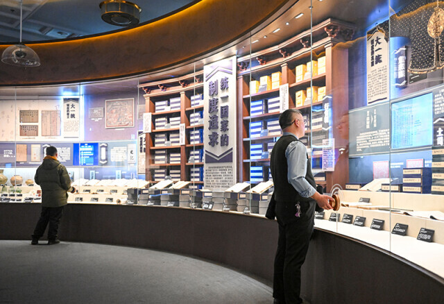 ▲2023年12月23日,參觀(guān)者在鑄牢中華民族共同體意識(shí)文物古籍展上參觀(guān)。展覽分為大一統(tǒng)、大交融、大團(tuán)結(jié)三個(gè)單元,共展出1500余件珍貴文物古籍。 新華社記者 郝建偉 攝