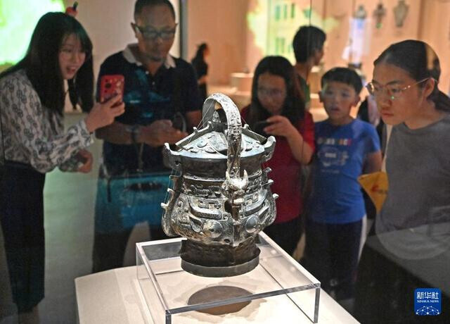 ▲10月1日,在廣西壯族自治區(qū)博物館“鑄于銅 融于心——廣西館藏青銅器中的‘三交’印記”特展上,觀(guān)眾在參觀(guān)。新華社記者 周華 攝