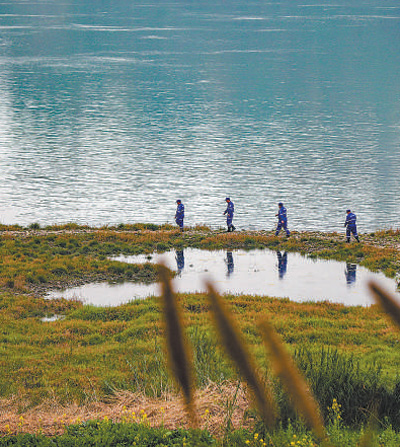 四川宜賓的巡護隊員正在長江邊的一處魚類產(chǎn)卵地進行巡護。莊歌爾攝(人民視覺)