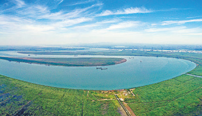 岸綠景美,水生態(tài)環(huán)境持續(xù)復(fù)蘇。水清河暢,2023年長江干支流水質(zhì)評價總體為優(yōu),Ⅰ至Ⅲ類水質(zhì)斷面占98.5%。長江干流涉嫌違法違規(guī)的2441個岸線利用項目均完成整改,共騰退岸線長度162公里。魚翔淺底,2023年長江流域監(jiān)測到土著魚類227種,比2022年增加34種,長江“十年禁漁”行動對恢復(fù)水生生物多樣性起到明顯效果。節(jié)水優(yōu)先,長江流域萬元GDP用水量由2017年的70.0立方米下降至2022年的49.1立方米。