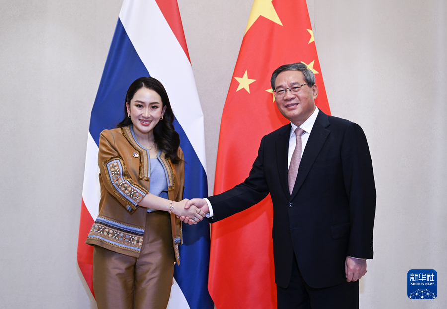 當?shù)貢r間10月10日,國務(wù)院總理李強在萬象出席東亞合作領(lǐng)導人系列會議期間會見泰國總理佩通坦。新華社記者 張領(lǐng) 攝