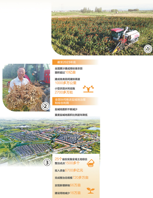 高標(biāo)準(zhǔn)農(nóng)田建設(shè)事關(guān)保障國(guó)家糧食安全。據(jù)農(nóng)業(yè)農(nóng)村部數(shù)據(jù)顯示,截至2023年底,全國(guó)累計(jì)建成高標(biāo)準(zhǔn)農(nóng)田面積超過10億畝,建成各類田間灌排渠道1000多萬公里、小型農(nóng)田水利設(shè)施2700多萬處,農(nóng)田抗災(zāi)減災(zāi)能力有了明顯提升。