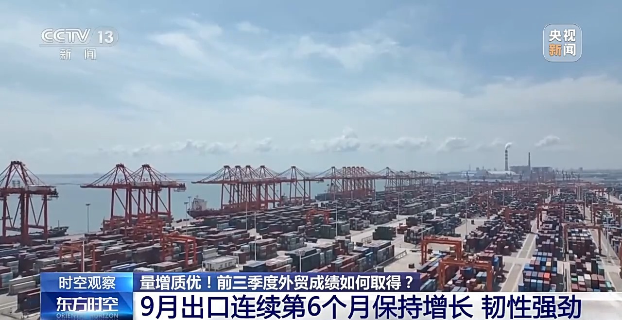 從前三季度的整體來看,9月份出口連續(xù)第6個(gè)月保持了增長,前三季度累計(jì)出口規(guī)模達(dá)到了18.62萬億元,創(chuàng)歷史同期新高,同比增長了6.2%,這個(gè)增速比最近10年同期的平均增速高了0.5個(gè)百分點(diǎn)。