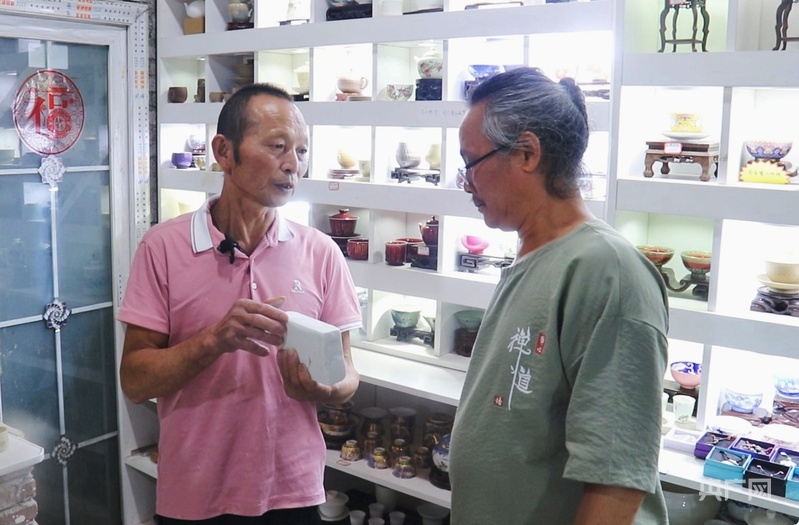 在繞南陶瓷主題園區(qū),詹金發(fā)和同事給游客分別展示、講解釉果制作技藝和水碓加工技藝,讓更多人對傳統(tǒng)的陶瓷加工技藝產生興趣。詹金發(fā)這一講解就是十多年。